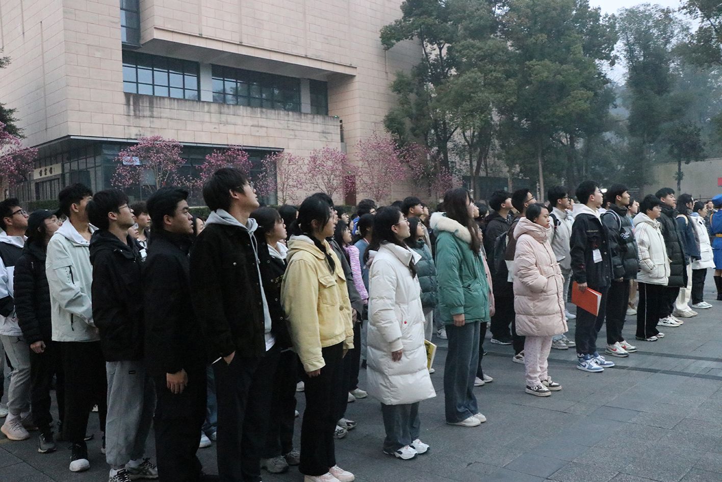 国旗台隆重举行升旗仪式。学院党委副书记郑莉佳、全体辅导员、2023级全体同学、团委及学生会全体成员参加仪式。仪式由学院团委书记许莹竹主持。