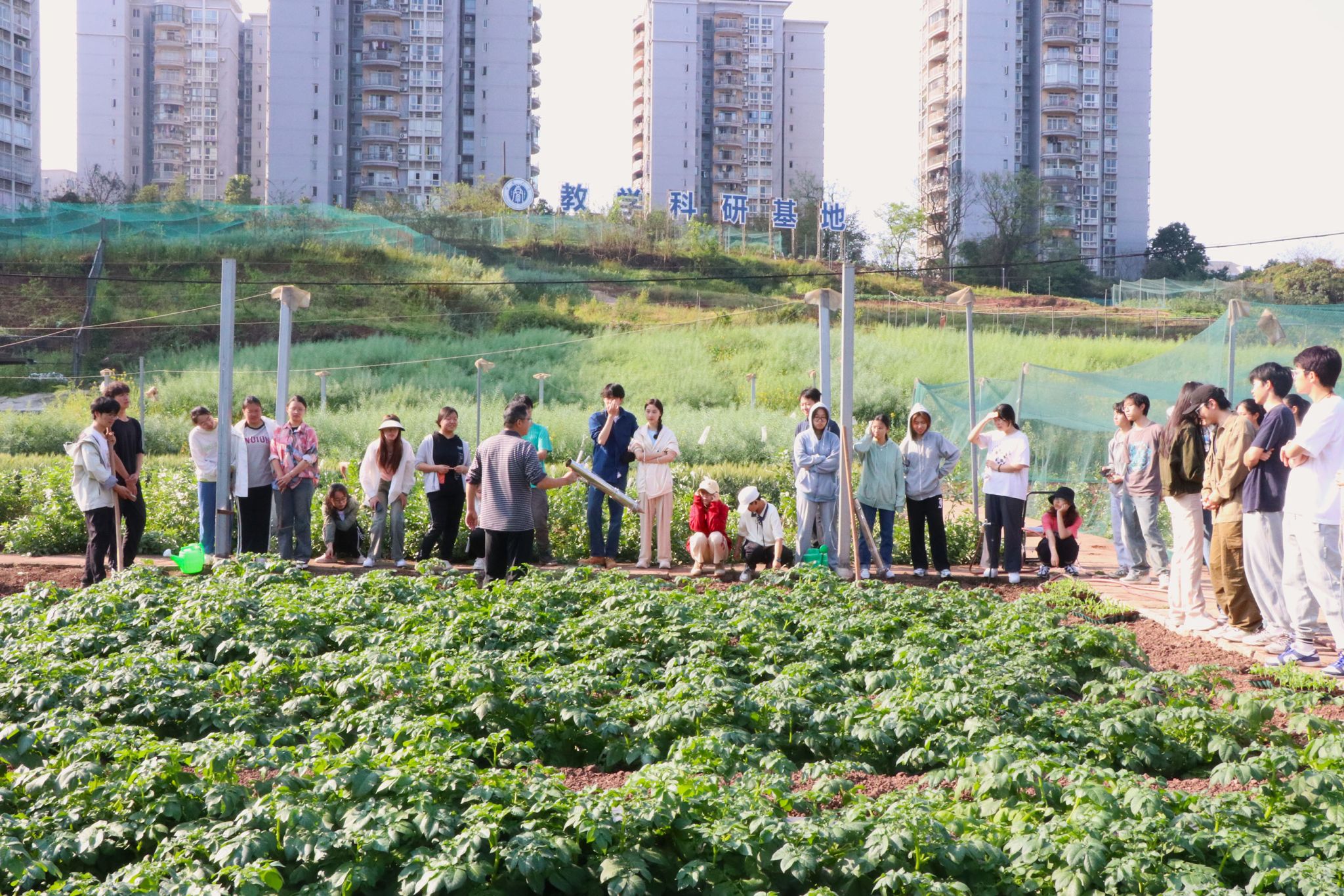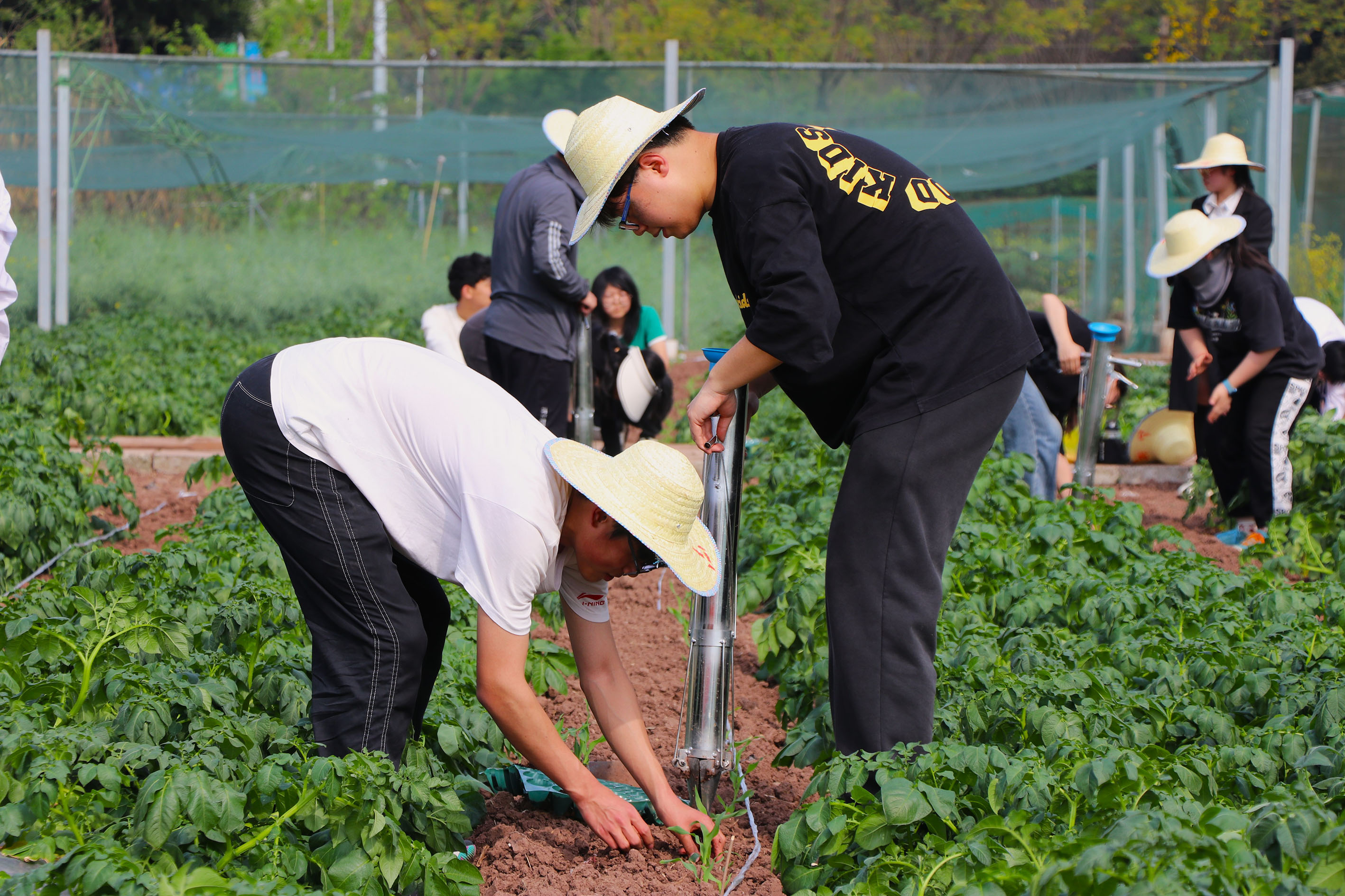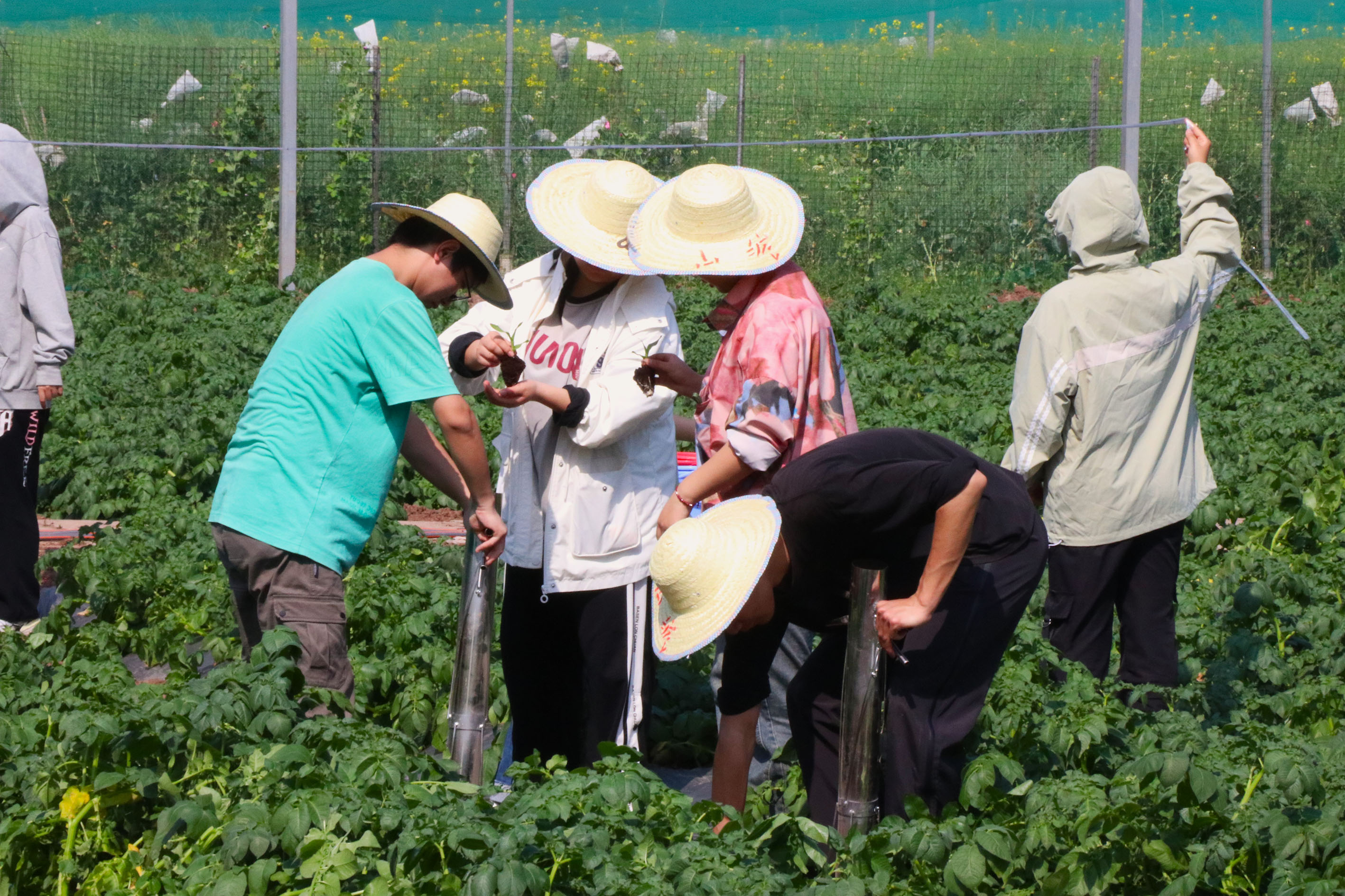 本次移栽活动分为上午和下午两个时段进行,34名体验者分别跟随农学专业的同学们和《作物生产实训》课程授课教师赵勇来到edddh