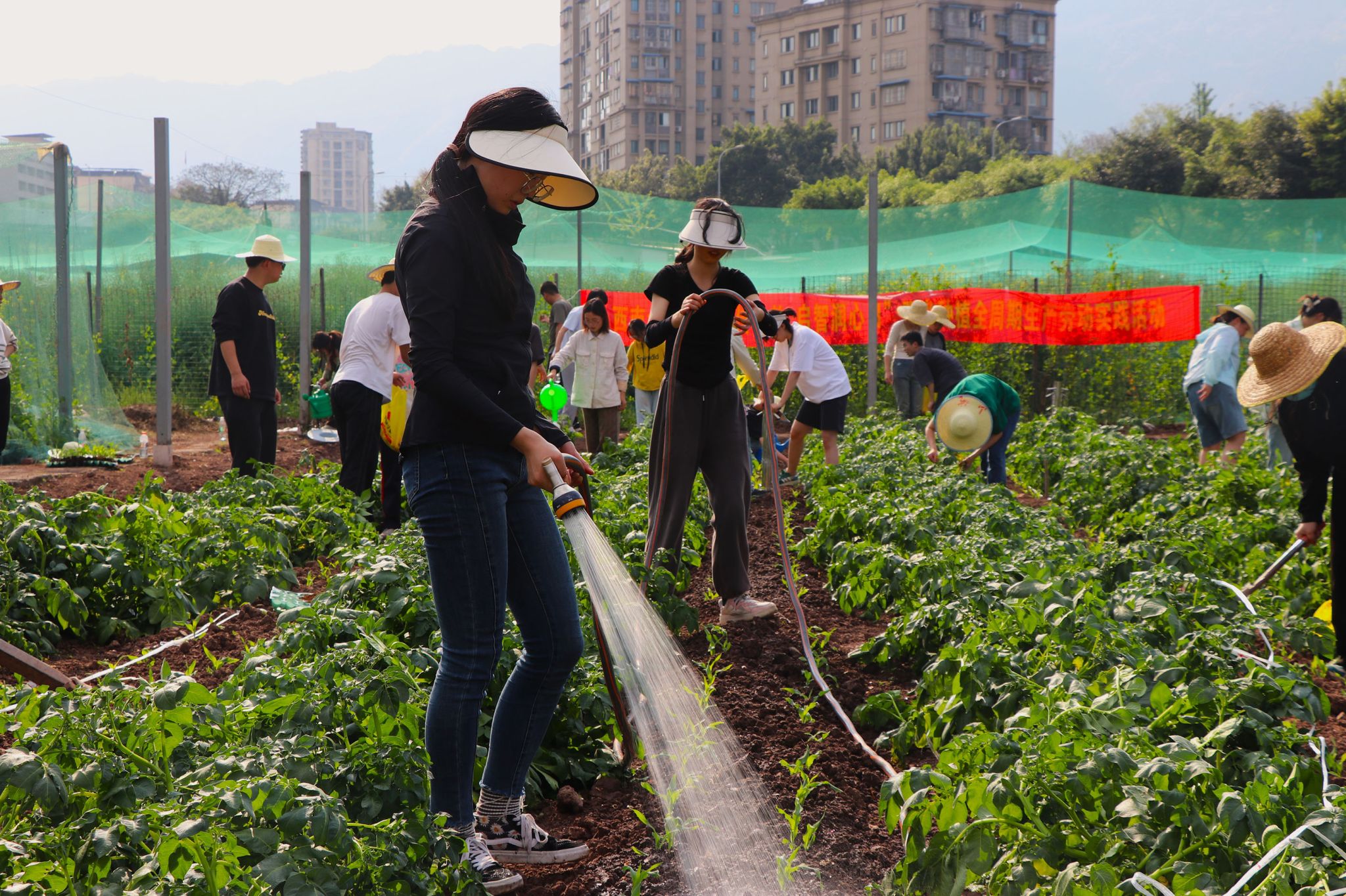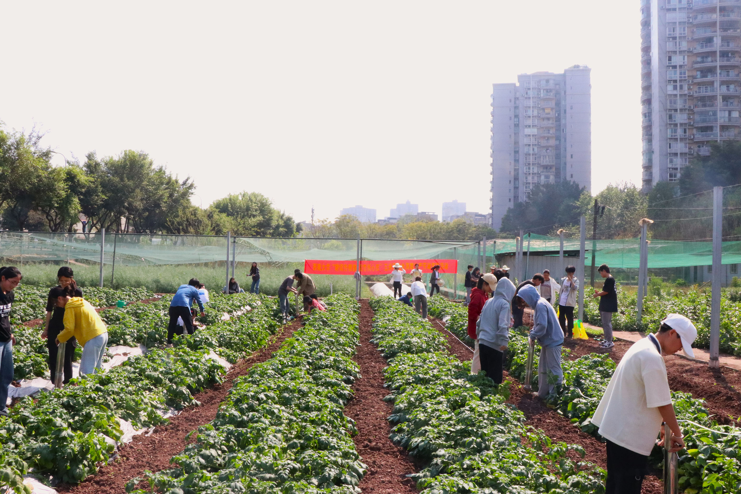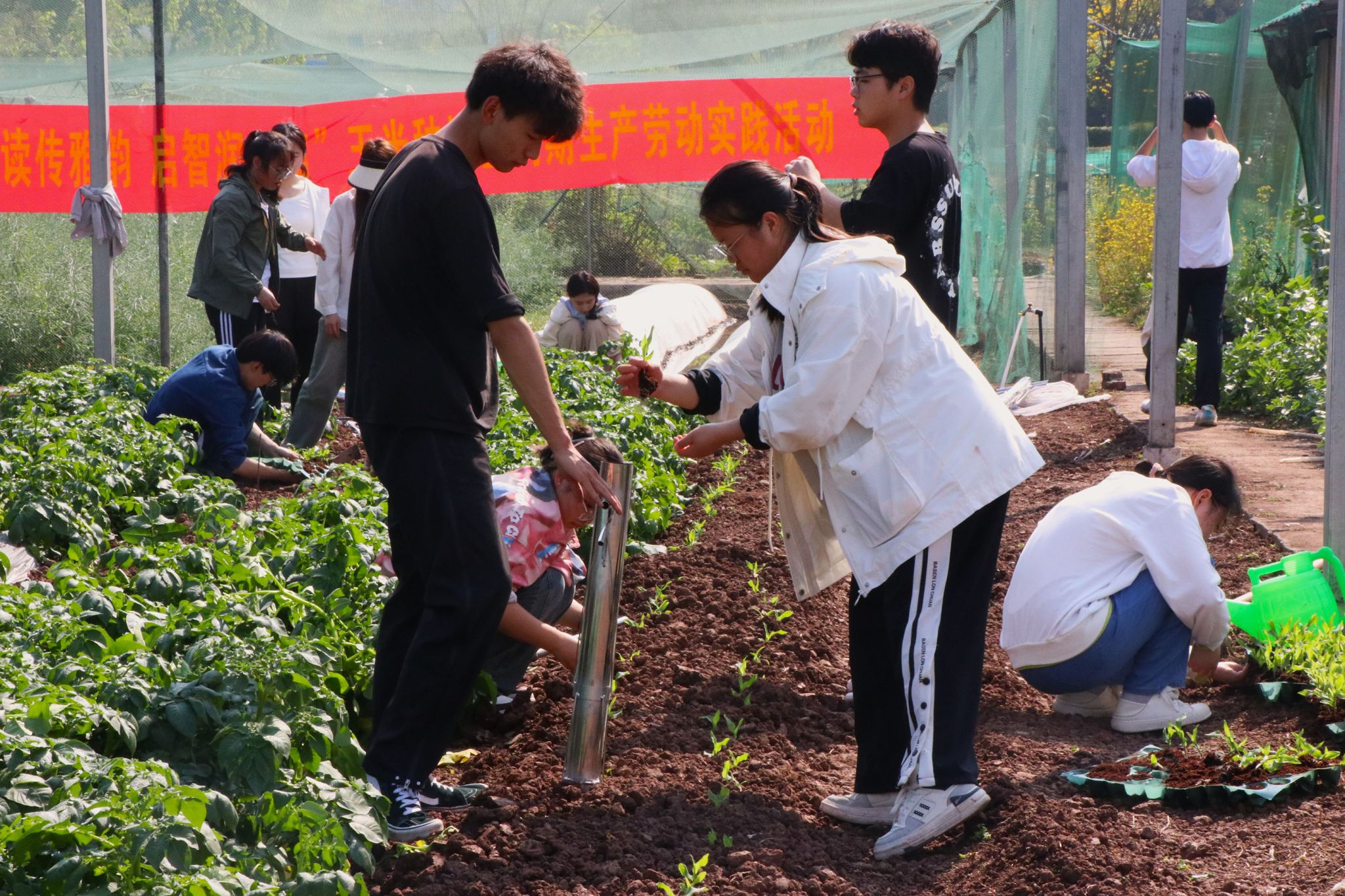 本次移栽活动分为上午和下午两个时段进行,34名体验者分别跟随农学专业的同学们和《作物生产实训》课程授课教师赵勇来到edddh
