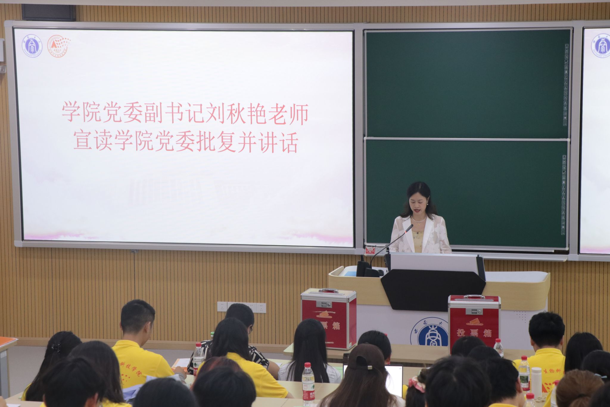 学院党委副书记刘秋艳代表学院党委宣读批复并发表讲话。她高度评价了第二十届学生会、第十九届研究生会在思想引领、服务同学、组织改革、校园文化建设等方面取得的显著成效。面向新征程,刘秋艳副书记对全体代表和全院青年学子提出四个目标:一是要筑牢信仰根基,勇担强国复兴使命,深刻领悟新时代青年的责任与担当;二是要激扬奋斗之志,传承五四精神,将个人理想融入强国建设、民族复兴伟业,在服务农业新质生产力发展、推动乡村全面振兴中展现青春风采;三是要扎根实践沃土,练就兴农报国过硬本领,在专业学习和躬身实践中追求卓越,传承“学农爱农、强农兴农”的情怀;四是要提升服务效能,发挥好桥梁纽带作用,建设清新阳光的学生组织。
