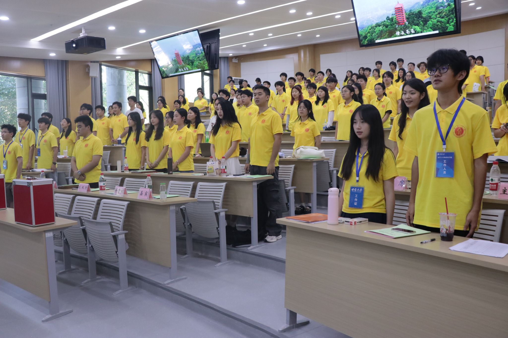 第十九届研究生会工作报告》。聂雪莹同学现场宣读了《学风建设倡议书》,号召全院同学弘扬优良学风,营造勤学笃行的浓厚氛围。席嘉翼同学宣读了《体育文化建设倡议书》,倡导同学们积极参与体育活动,传递体育精神,展现青春活力。大会在激昂的edddh