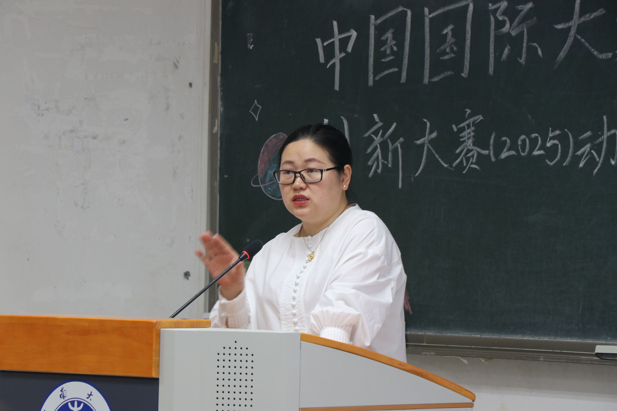在动员会首环节,学院团委书记许莹竹老师围绕中国国际大学生创新大赛的赛事内涵展开深度解析。她系统阐释了赛事“培育具有社会责任感、实践能力和创新思维的新时代人才”的核心宗旨,强调其为青年学子搭建了创新成果展示与学术交流的双重平台。随后,她围绕大赛的相关内容,结合学院专业特色,进行了细致入微的讲解,帮助在场学子深刻认识到此次大赛是一个难得的锻炼机会,不仅能够提升个人的专业能力和创新思维,还能与来自全国高校的优秀学子同台竞技,开拓视野。