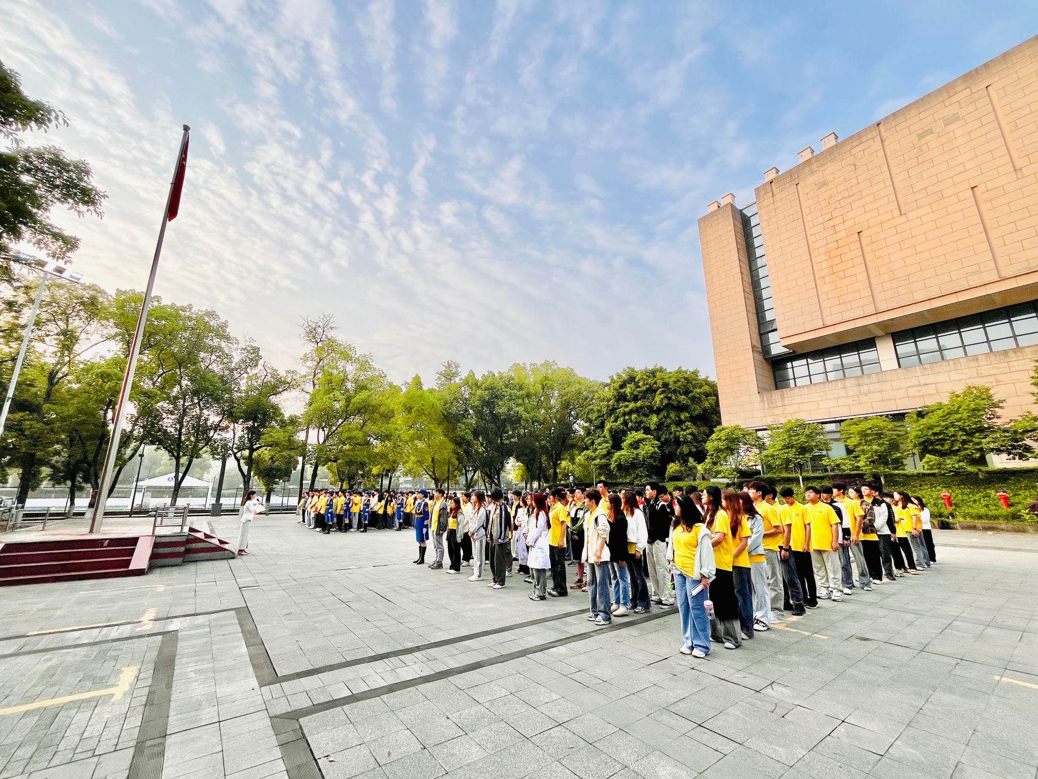 在光大礼堂国旗台庄重举行升旗仪式。学院党委副书记刘秋艳老师、2024级辅导员王皓老师,2024级全体同学、团委及学生会全体成员参加仪式,仪式由王皓老师主持。