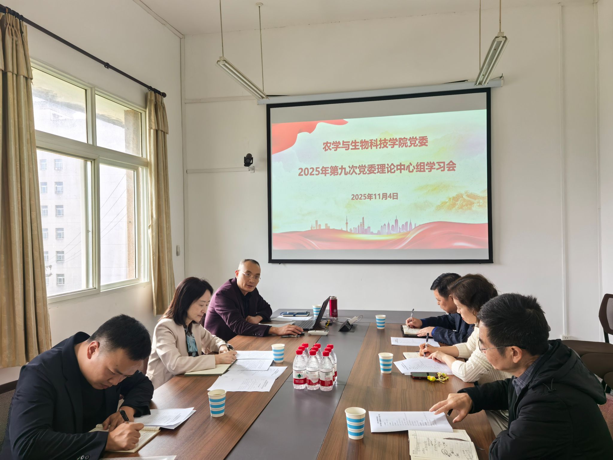 2025年6月27日,学院党委理论学习中心组在学院406会议室进行第6次集中学习。学习了学校下发的学习教育工作提示第9期和中党建发2025 8号文件《关于集中整治违规吃喝的通知》。与会党委委员吕典秋,郑莉佳,刘秋艳,张建奎,李云峰,柴友荣进行了学习心得发言。阳义健书记做了总结讲话。