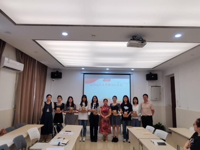 接下来,全体支部党员为崔翠同志、王国强同志过政治生日;支部联系领导郑莉佳同志为毕业生党员赠送纪念品。