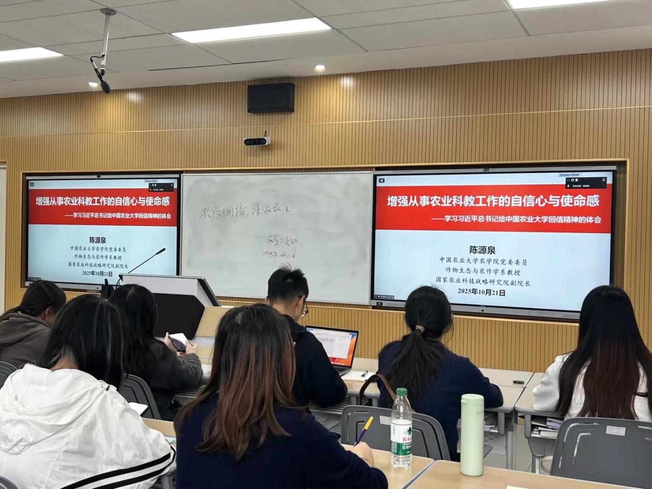 党委本科生农学第二党支部积极组织党员、发展对象及入党积极分子参与此次线上学习,与来自全国近40所涉农高校的师生共同感悟回信精神,凝聚强农力量。