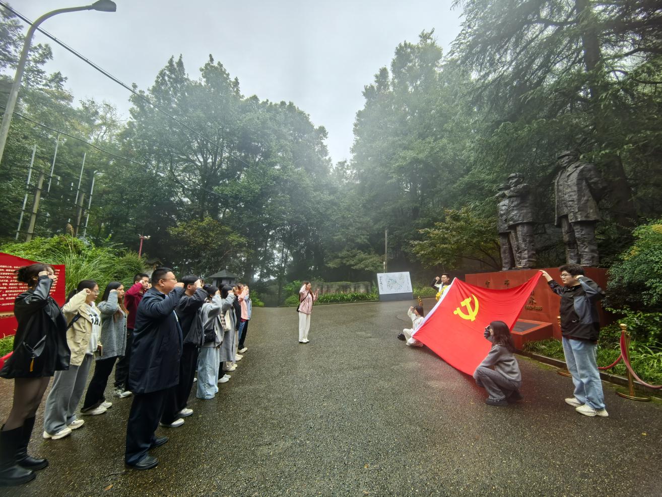党委专职组织员薛中华带领23名新发展的党员,开展了一场以“弘扬科学家精神,传承红色基因”为主题的党性教育活动。此次活动是响应市委教育工委关于加强新发展党员党性教育的专项要求,结合学校特色和本地红色资源设计实施的实践教学。