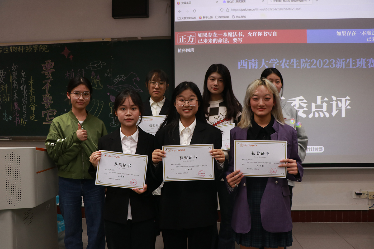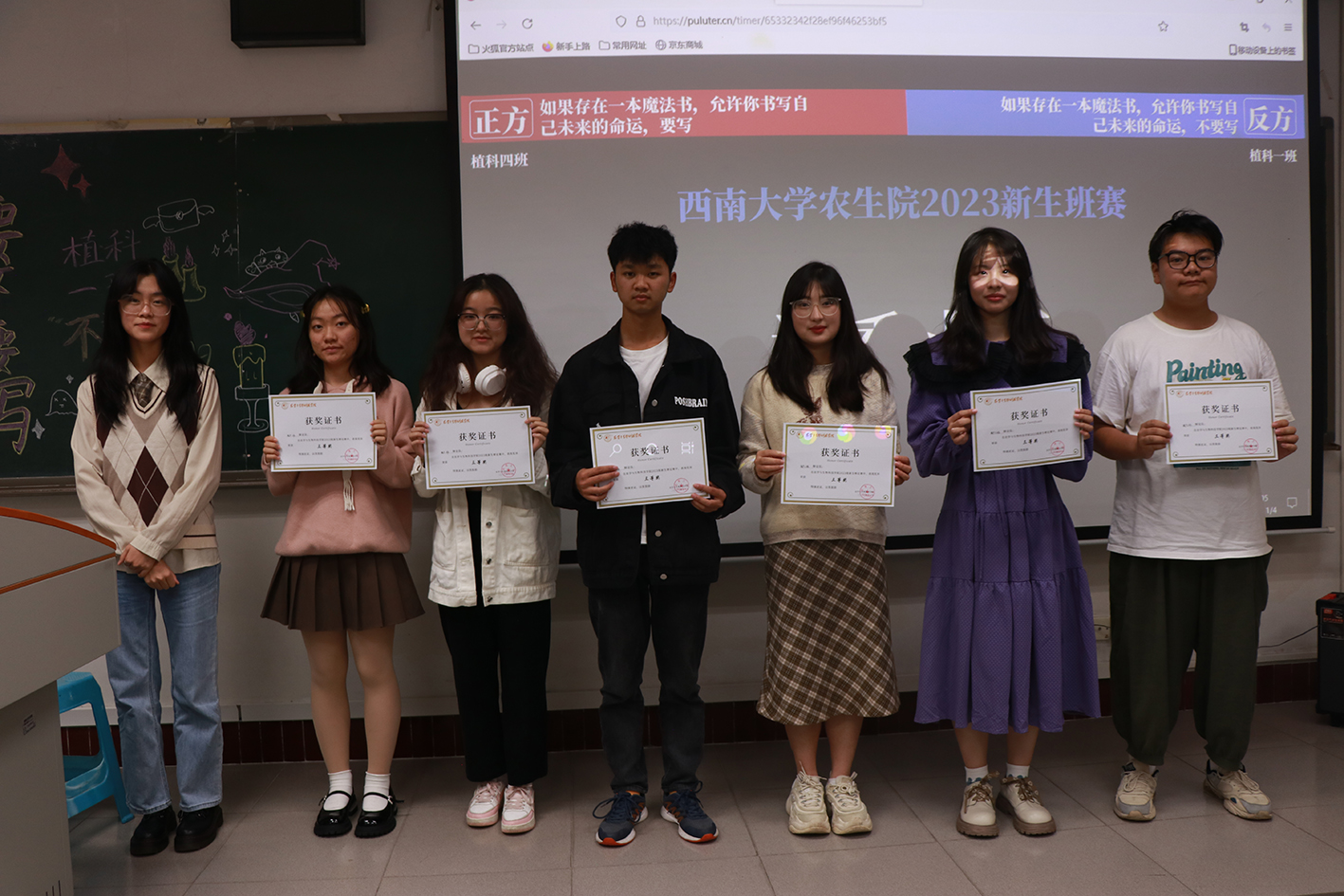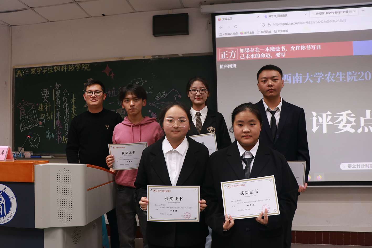 在四十分钟的激烈辩论后,五位评委根据辩手们的多元论据和精彩表现,发表了个人观点,向辩手们提供与此辩题相关的意见,着重强调双方应在书写魔法书的时间、地点及书写次数上产生更多交锋。在评委们深入透彻的分析中,反方辩手以更为清晰的逻辑赢得评委们的赞赏。最终,2023级植物科学与技术1班的同学以12:3的优异成绩取得本届新生辩论赛的冠军。同时植物科学与技术4班的同学获得二等奖,植物生产类1班与3班的同学获得三等奖。