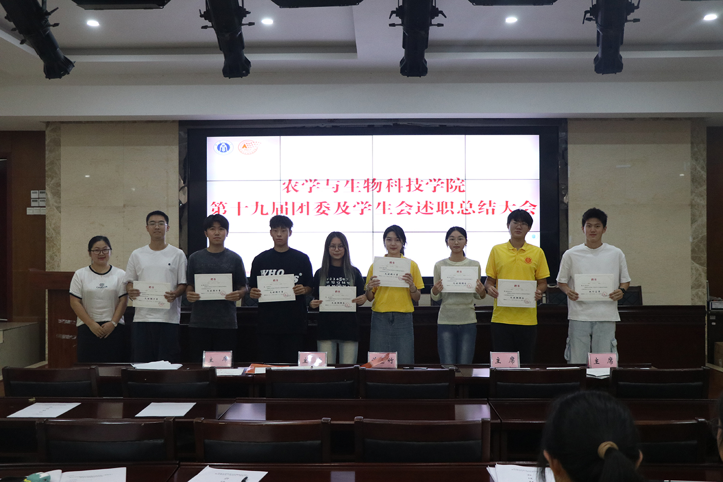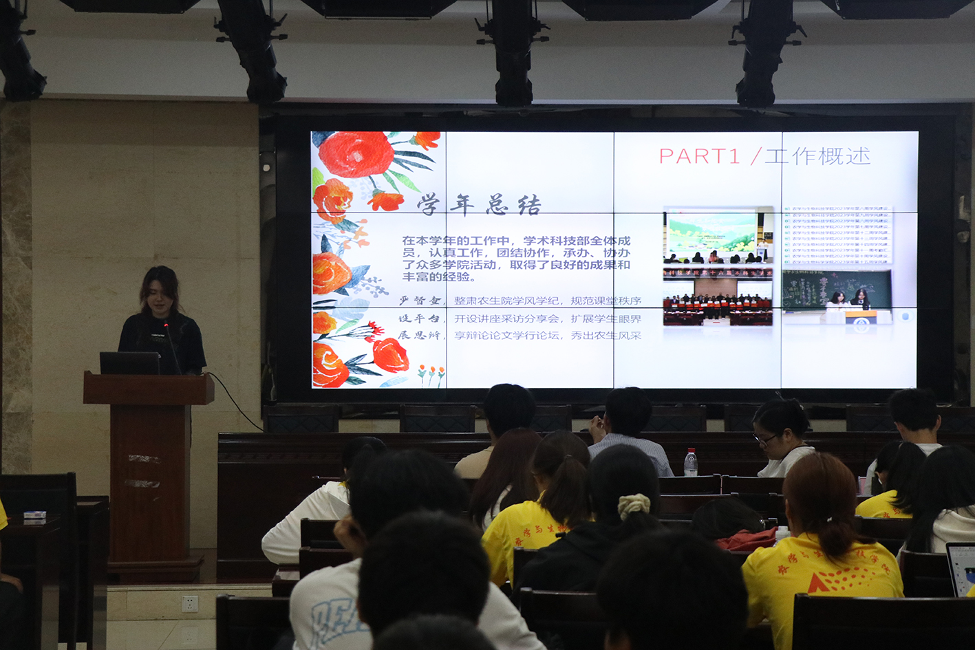 第十九届团委及学生会述职总结大会于南区活动中心106会议室顺利召开。学院团委书记许莹竹老师出席会议,第十九届团委及学生会全体成员共同参会。