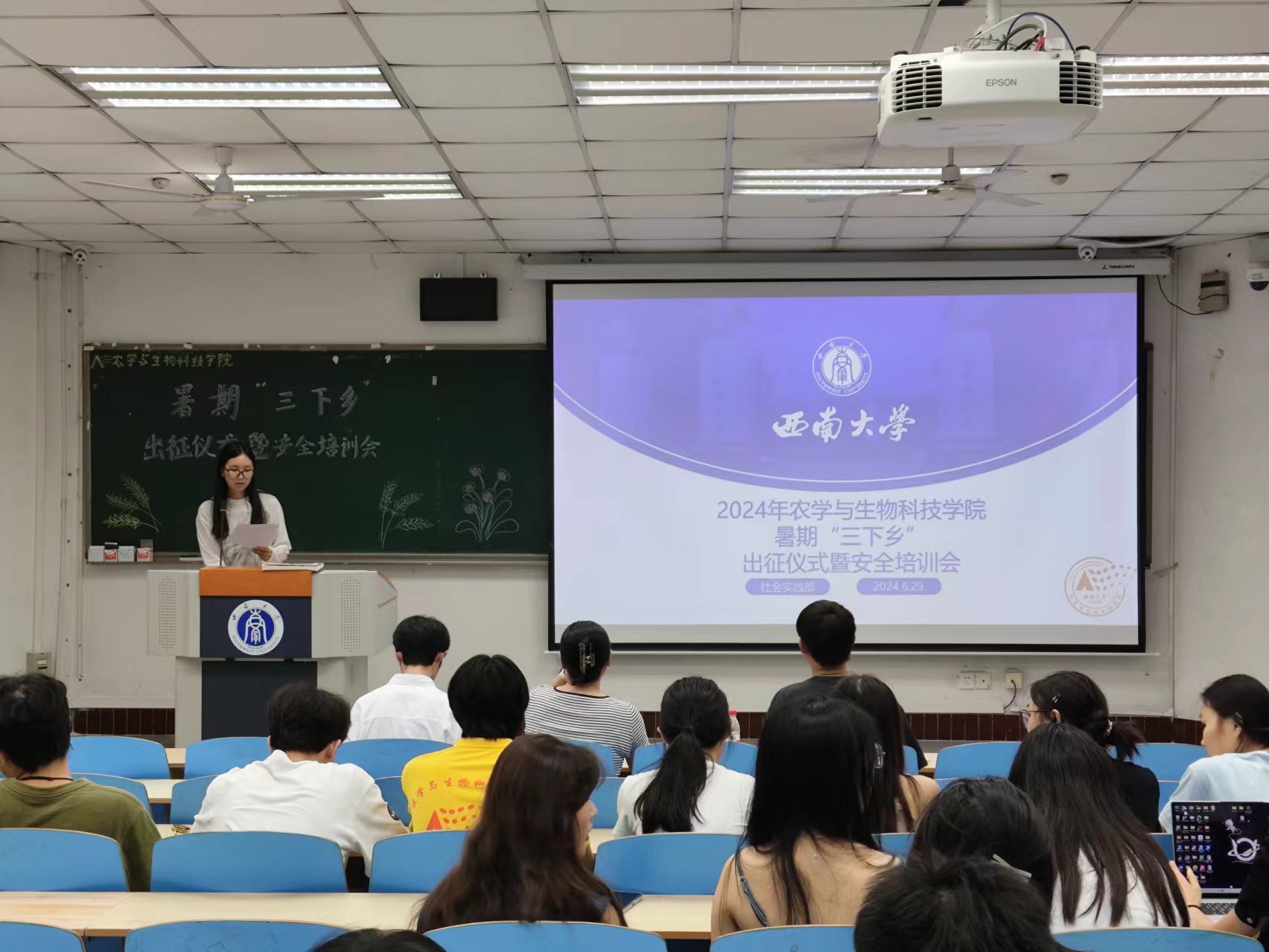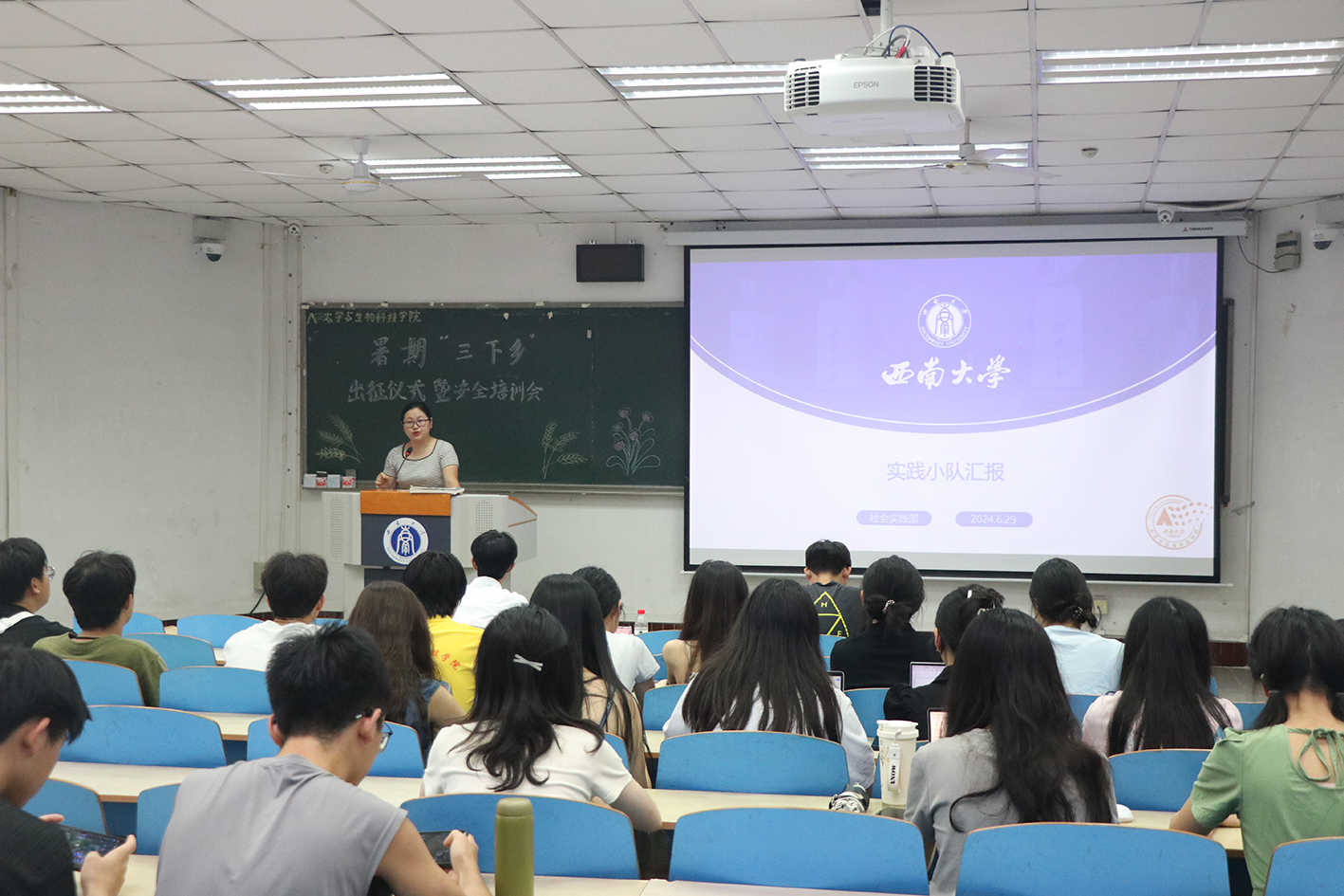 2024年暑期“三下乡”社会实践出征仪式暨安全培训会在32教213举行。学院团委书记许莹竹老师出席会议,团委及学生会主席团成员、本次暑期“三下乡”社会实践校级小分队全体成员共同参加。此次会议旨在帮助学生找到活动定位,明确活动目的,增强安全意识,为三下乡实践活动的顺利开展奠定良好基础。