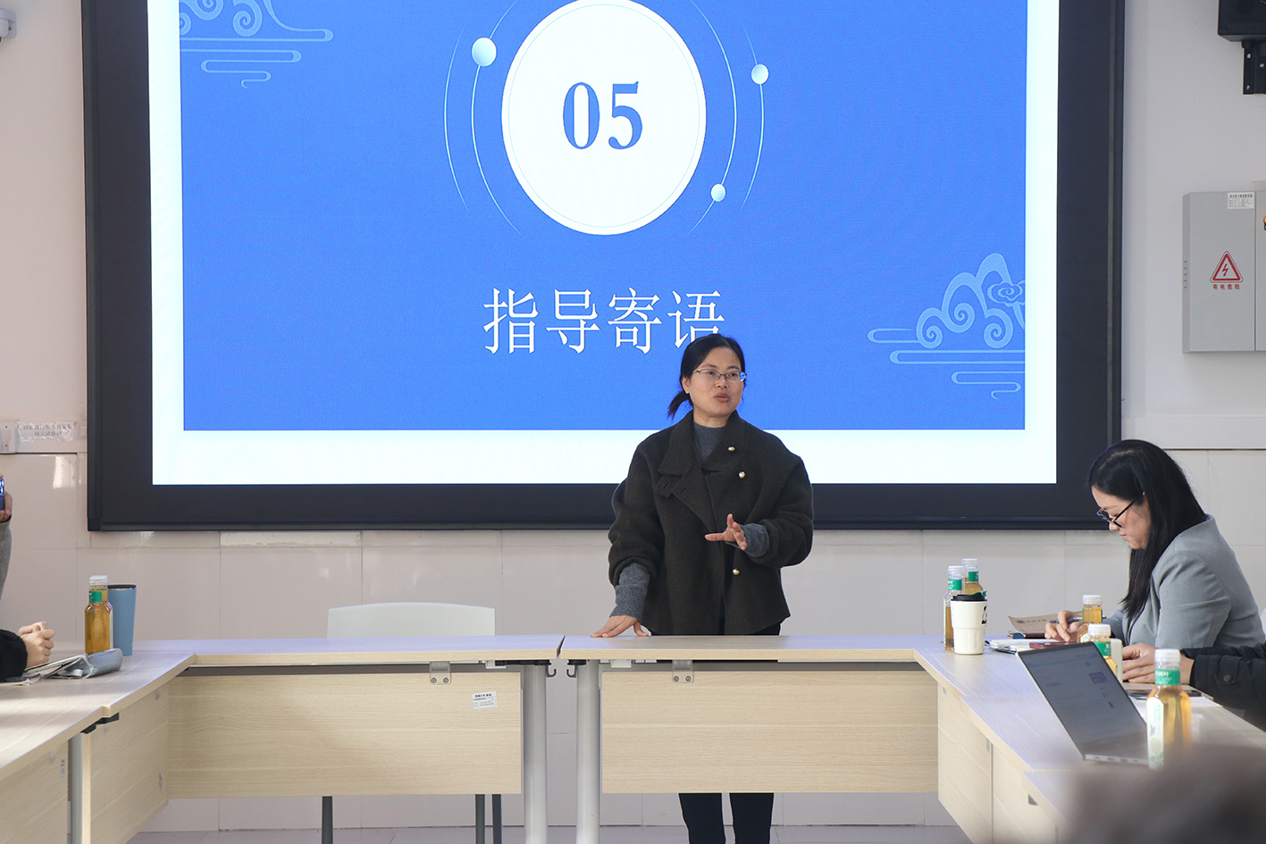 活动最后,老师们为同学们送上了指导寄语。桑贤春老师首先指出,同学们要以学习为主,大创为辅,要思路清晰,明确自己的需求与能力,并据此合理申请项目等级、设计项目内容,以及推动项目的成果转化。项目应形成完整的闭环而非一味追求内容丰富度,实验中要夯实基础知识、加强沟通交流、详尽记录实验数据。其次,桑老师还着重强调坚持诚信原则。他要求同学们确保数据的真实性,坚决避免照搬前人研究成果,而要在其基础上进行拓展与创新。实验记录必须真实且详尽,不容许有虚假成分。再次,桑老师强调了规矩意识与谦逊态度。他提醒大家,在项目申报、实验进行以及结题验收等各个环节中,必须保持一致性和规范性,同时书写也要符合学术标准。此外,同学们还应保持谦虚好学的精神,不断吸收新知识。最后,桑老师阐述了交际与沟通的准则。有效交流、保持尊重、发现并解决问题以及良好的交际,都是同学们在项目中不可或缺的能力。他提醒同学们要在实践中不断锻炼和提升听说读写等基本技能。