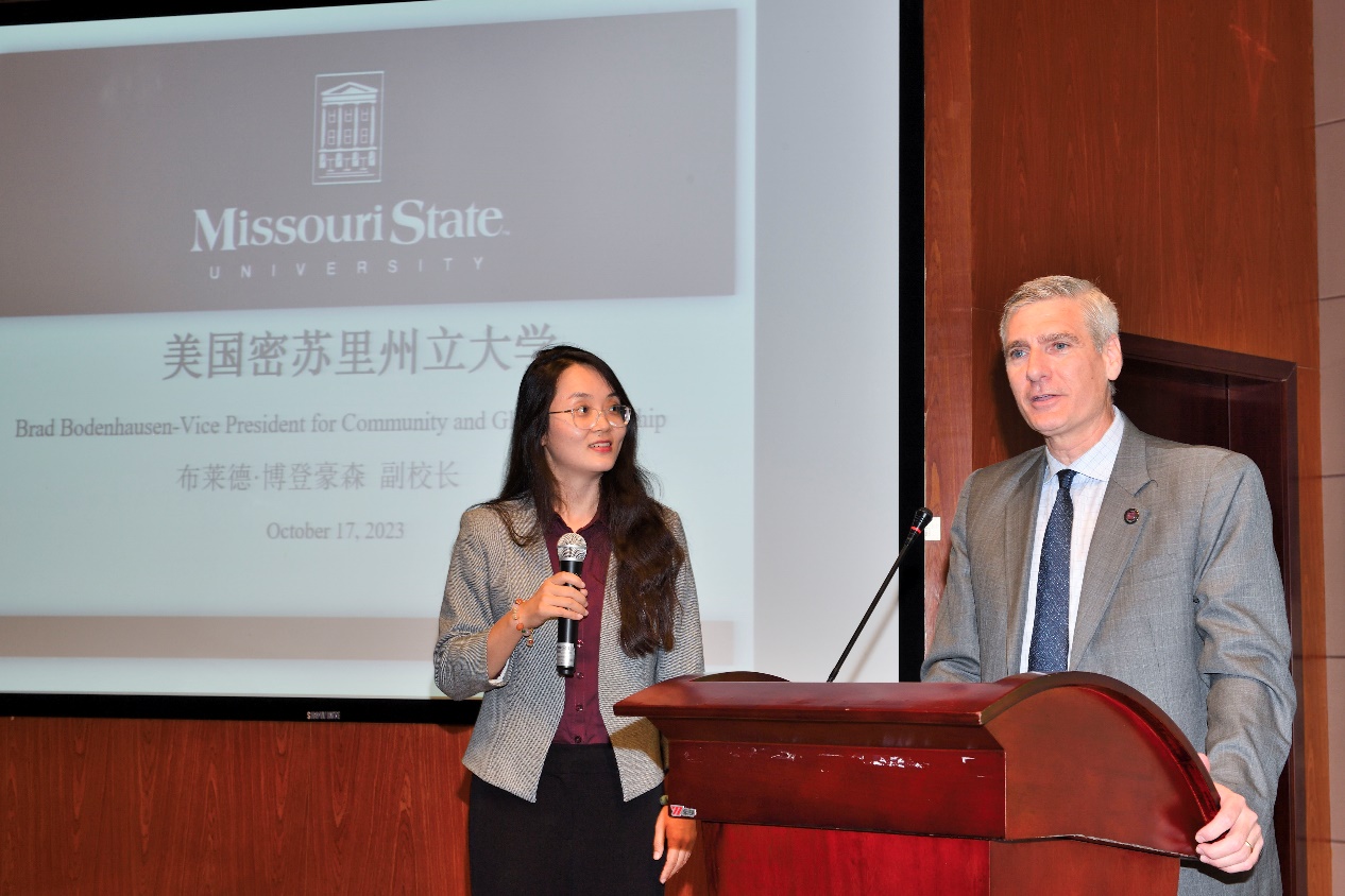 2023年10月16-17日,美国密苏里州立大学斯玛特校长、雅辛斯基教务长一行9人,到访学院,并与学院领导、老师,以及全体植科学生和学生家长代表,举办了盛大的中美校区交流会。