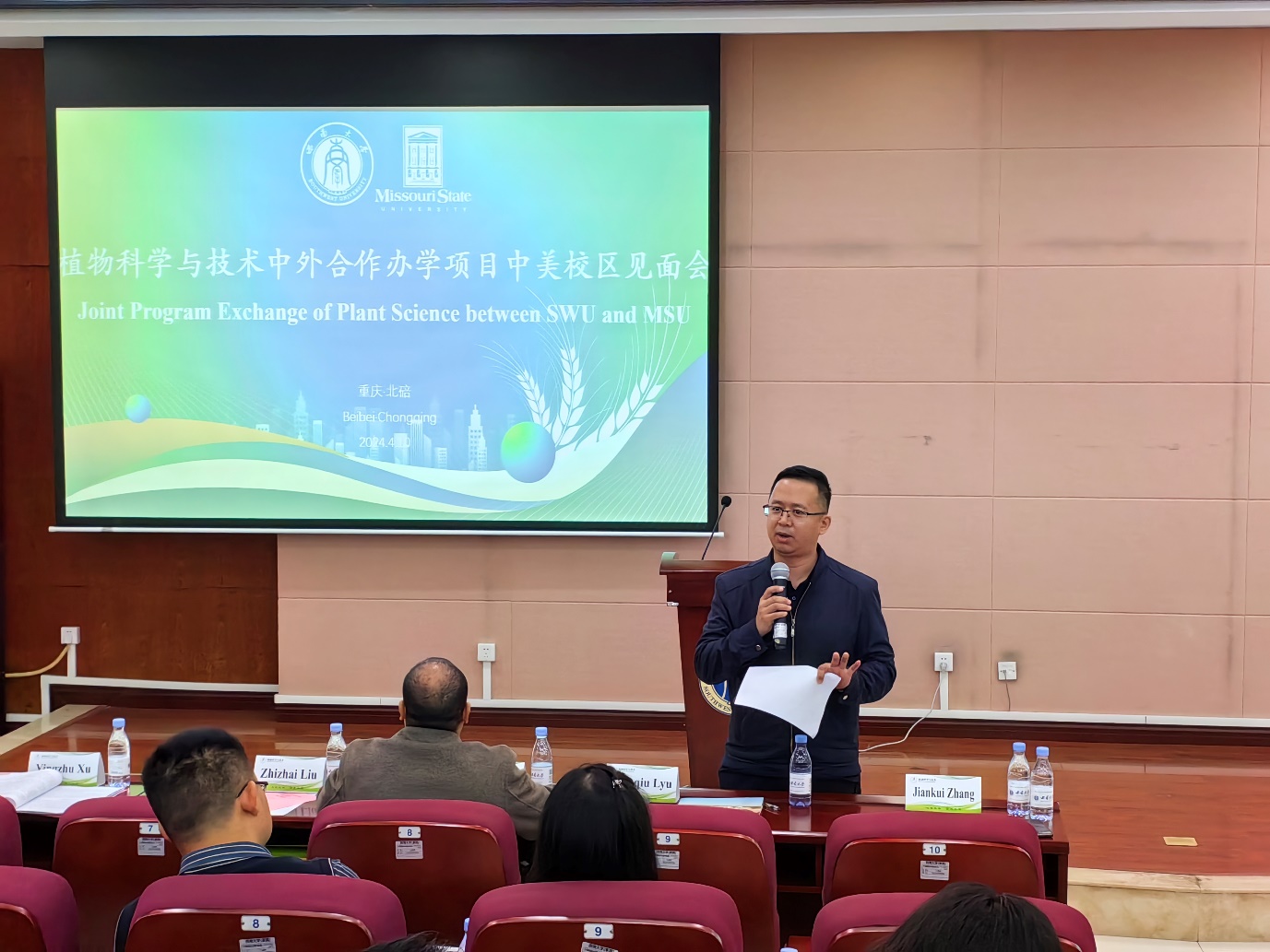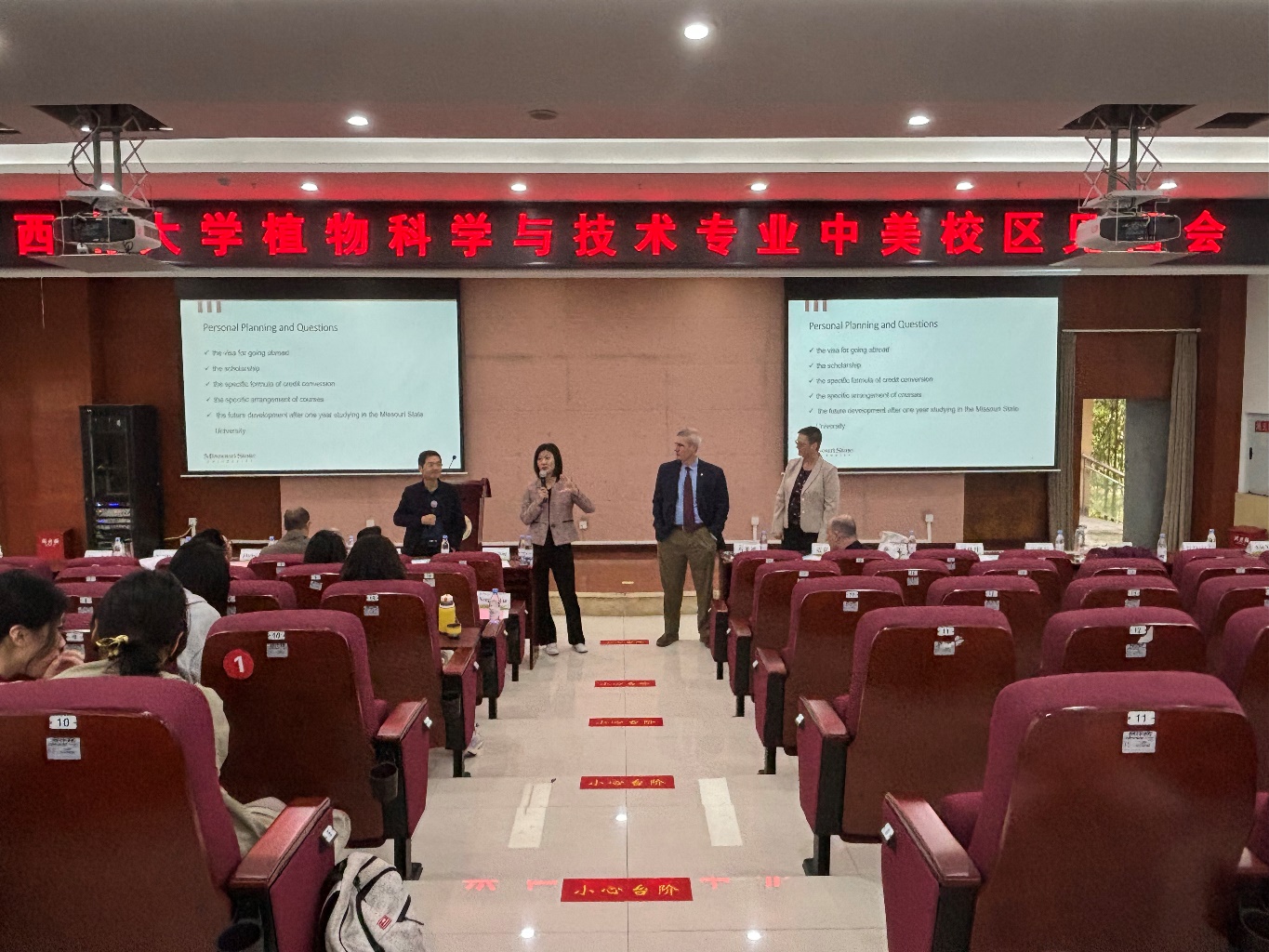 自2019年获批至今,植物科学与技术中外合作办学项目已经顺利完成了第一轮5个年级的招生工作。2024年适逢第一轮招生结束和第二轮招生启动以及第一轮项目评估等关键节点,是本项目建设的关键年。在此重要时刻,MSU副校长Brad Bodenhausen率西平原校区副校长Michael Orf、助理副校长Paula Moor,以及MSU国际处处长兼中国项目办公室主任刘丹丹女士一行4人,于4月9-11日到访我校,与学院师生开展座谈交流,共商项目未来发展。