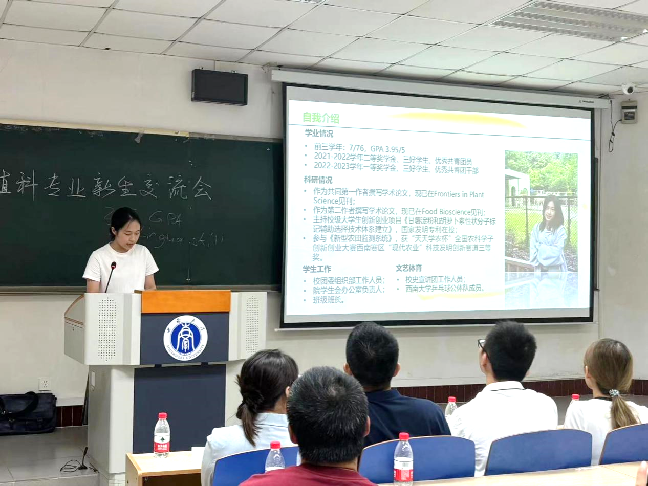 植物科学与技术(中外合作办学)专业(以下简称“植科”),是学院乃至学校培育新时代国际化新农科人才的重要平台。2024 年 9 月,在重庆的炎热夏日里,第六届植科专业新生迎来了他们的入学季。为帮助新同学更好的了解学院及专业,9 月 11 日下午,2024 级植科专业新生交流会在 32 教学楼414 举行。
